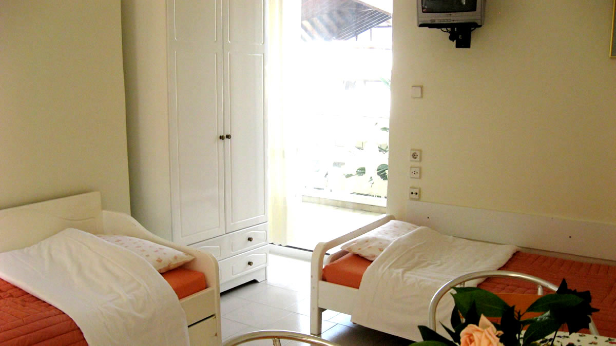 We have two bedroom apartments with 4-5 beds, a kitchen, bathroom and balconies. It is equipped with fridge, oven, kettle, TV and air contition.